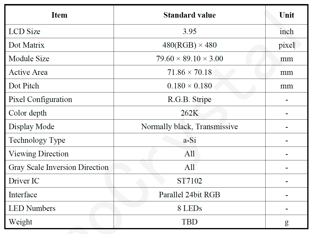 主题 : 3.95吋 方形显示屏 480*480分辨率 IPS 24bit RGB接口